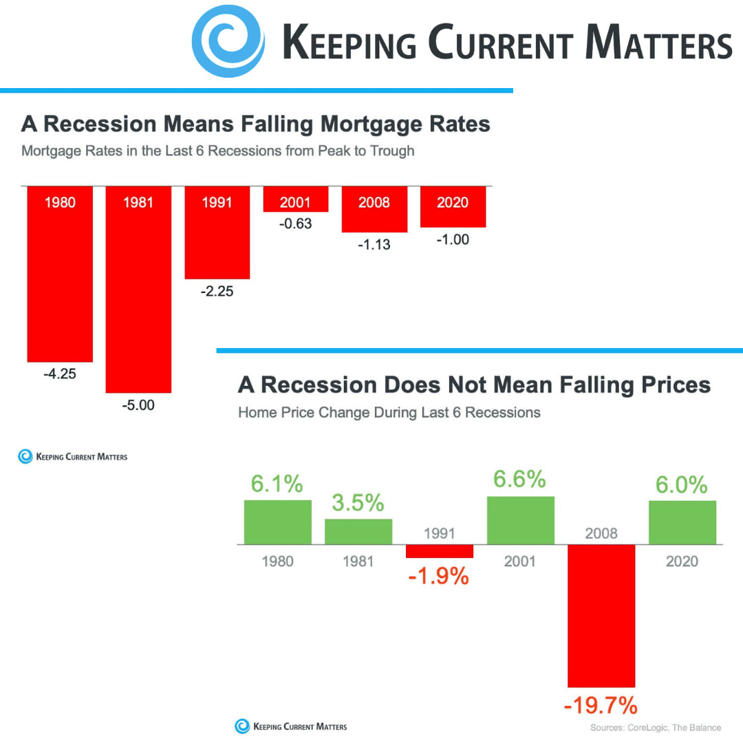 There’s no doubt everyone remembers what happened in the housing market in 2008. But you don’t need to fear the word recession if you’re planning to buy or sell a home. According to historical data, in most recessions, home price gains have stayed strong, and mortgage rates have declined.