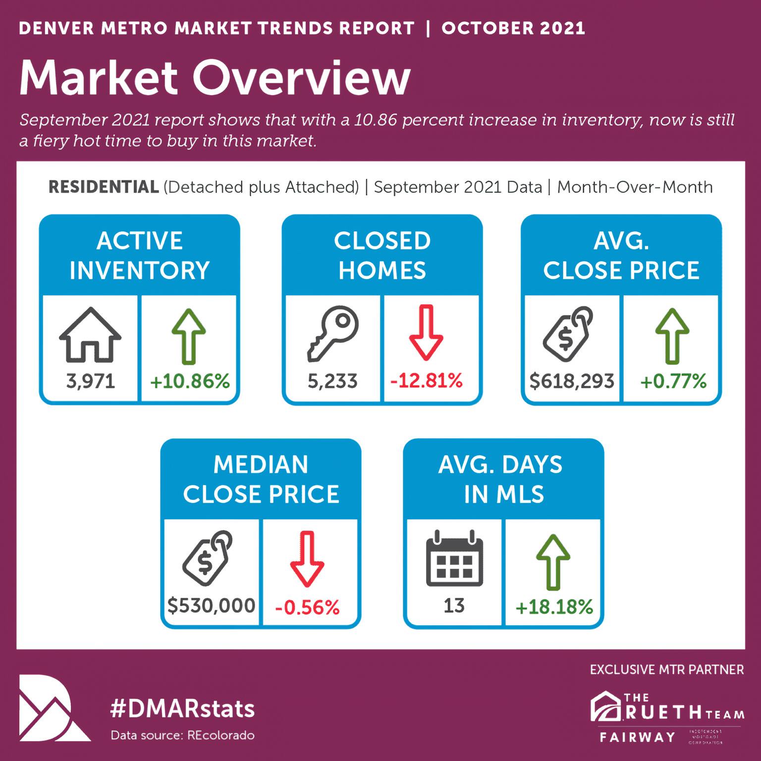 September was a red-hot month in the housing market. With lower inventory and fewer homes, the balance of supply and demand stayed steady, leading to another month of competition for buyers. Months of inventory increased to .76 and while it may not have felt like a huge increase, it gave potential buyers a few more options.